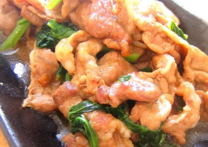 Simple Way to Prepare Award-winning Pork and Komatsuna Fried in Garlic and Soy Sauce